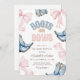 Perfect for a western or rodeo themed gender reveal party, this invitation features a beautiful pink bow and a pair of cowboy boots symbolizing the classic "He or She" theme.