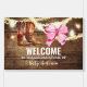 The template features a faux rustic wood base, cowboy boots, a pink bow, string lights, and stars. Personalize by typing your wording over the sample text and upload your images for "then" and "now". You can also delete existing text and add other text or images. To access advanced editing tools, please go to “Personalize”, and scroll down to access the “design tool” link. Please check the “Other products from this collection” link for matching products.
