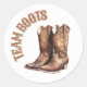 Boots or Bows Gender Reveal voting stickers featuring a pair of western cowboy boots. Place your bet