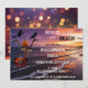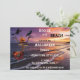 Halloween cocktail party invitation featuring a sunset on the beach with a cocktail, witch and raven. On the back is a funny lobster in festive light sparkles. A unique and fun invitation for anyone who fancies a beach party.