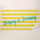 Fun yellow and white cabana stripe beach towel, with the words Boozing & Snoozing. Cool towel for your day club party or beach vacation.