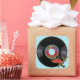Square sticker to match our "Bop 'Til You Drop" invitation with an image of a 50s Rock & Roll 45 rpm record and a vintage image of Jitterbug dancers on a background of blue-on-blue polka dots. The title of the record is “Bop ‘Til You Drop (At My Party).” See matching invitation, favor tag, label and wrapping paper. See the entire Nifty 50s Sticker collection in the INVITES | Stickers & Labels section.