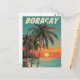 This warm and dreamy vintage poster captures the tranquil beauty of Boracay at sunset. With swaying palm trees, powdery white sand, and a glowing orange-pink sky over calm turquoise waters, the artwork evokes the peaceful charm of the Philippines’ most beloved island. Styled with retro textures and sun-faded tones, it's a nostalgic tribute to classic tropical escapes and timeless island serenity.