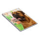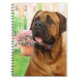A beautiful close up shot of a Bordeaux Mastiff sitting in a garden.