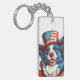 Border colie with an American flag hat Keychain