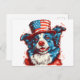 Show off your love for both your country and your furry friend with our adorable Patriotic Border Collie. This charming design features a lovable Border Collie proudly wearing a hat adorned with the American flag, perfect for pet lovers and patriots alike.