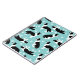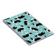 Cute black and white border collies sit, stay and rollover on a blue background with pawprints, a fun dog themed pattern.