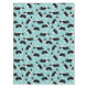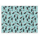 Cute black and white border collies sit, stay and rollover on a blue background with pawprints, a fun dog themed pattern.