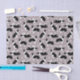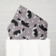 Cute black and white border collies sit, stay and rollover on a gray background with pawprints, a fun dog themed pattern.