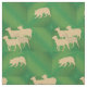 This herding design use shadow silhouettes of a Border Collie herding Sheep. The dog and sheep silhouettes march across a background of various tones of green.