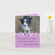 An adorable photograph of a Border Collie adorns the front of this card. A pink background with a retro design and text that reads: "On your birthday try to remember: A smile is happiness you'll find right under your nose" Inside customizable text reads: "No Birthday card holds more love than this 'cause it's mailed with a hug and it's sealed with a kiss!".