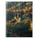 Set sail into the magic of the holiday season with this beautifully detailed illustration, showcasing a proud dog sitting in a festively decorated boat, gliding across a serene Christmas lake. The twinkling lights from nearby pine trees reflect off the water, casting a warm, festive glow that enhances the cozy ambiance. Ornaments dangle from the boat's sides, while glowing lanterns light the way, creating a scene that captures the true essence of Christmas warmth and joy. This nostalgic artwork brings a touch of holiday magic to any space, perfect for those who cherish the spirit of the season.