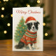Border Collie Christmas Santa Hat & Tree Holiday Card
