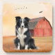 Border Collie Dog and Red Barn Ranch Beverage Coaster