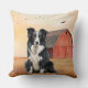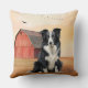 Border Collie Dog and Red Barn Ranch Throw Pillow