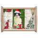 Border Collie Dog sitting outside decorated home with Christmas wreath, Christmas tree is a perfect Christmas gift idea for dog lovers.