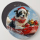 Border Collie Dog in Sledge Let it Snow Christmas Button