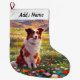 Border Collie Dog sitting in a meadow of flowers. Add this image to other products. Add your own text too. Lots of pets in my stores. Stockings, Planners, notebooks, phone cases, ornaments, more.