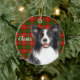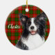 Watercolor illustration of Border Collie dog on festive green and red plaid background. Personalize with name or special message
