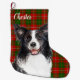 Watercolor illustration of Border Collie dog on festive green and red plaid background. Personalize with name or special message