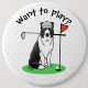 Border Collie Dog Playing Golf (black & white) Fun Button