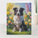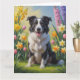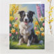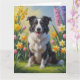 A cheerful dog sits peacefully on lush green grass, surrounded by colorful spring blooms under a soft blue sky. This digital oil painting captures a serene moment with expressive brushstrokes, warm colors, and a sense of gentle joy.