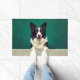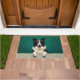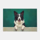 The rich emerald green background adds depth and elegance, making it a standout piece for any entryway. Designed with extra space at the top and bottom, it allows easy personalization with names, welcome messages, or custom text—perfect for unique dog-themed doormats and thoughtful gifts.