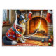 A cozy Christmas artwork featuring a beautiful Border Collie sitting beside a glowing fireplace adorned with stockings and sparkling Christmas lights. This festive holiday scene captures the Border Collie’s intelligence, loyalty, and gentle nature, making it perfect for dog lovers and warm seasonal decor. Add a touch of heart and holiday cheer to your home with this charming pet-inspired artwork.