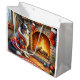 Border Collie Fireplace with Christmas Lights Large Gift Bag