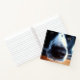 This square notebook features my close-up photograph of an adorable black and white Border Collie Heeler mix rescue dog snout on the front and back of the notebook. Fill in the template fields, remove the text or click customize to select a typeface style, size, and color you prefer.