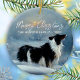 Border Collie in Winter Snow Merry Christmas Holiday Ornament. Calm winter snow landscape with a lovely black and white border collie. Merry Christmas in a trendy script. Holiday ornament for a border collie owner. You can change the text or erase it.