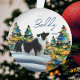 Border Collie in Winter Snow Forest Christmas Trees Ornament. Calm winter snow landscape with a lovely black and white border collie and colorful Christmas trees. Dog`s name is in a trendy script. Lovely holiday ornament for border collie owners, dog lovers and animal lovers. Personalize the name and the year.