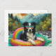 Adorable Border Collie with rainbow sunglasses in a rainbow colored float AI generated art
