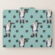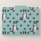 An image of a Border Collie Dog is on this set of file folders. Each individual folder has the dog wearing a blue scarf amid a pattern of black paw prints. There is one folder with a light gray background, one with a light mint green background, and one with a light gray blue background, so you can easily identify each separate folder. The insides match the background color of the outsides. Perfect for keeping your dog records in, or just for fun!
