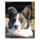 A beautiful border collie farm dog caught hiding behind a tractor trailer.
