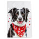 Border Collie Red Heart Bandana Christmas Gift Bags. Cute and happy black and white Border collie with a red bandana around the neck with hearts.