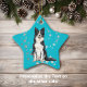 Border Collie Silver Stars Teal Christmas Ceramic Ornament