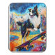A beautiful border collie skateboarding colorful AI generated art