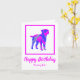 Border terrier dog silhouette in crazy hot pink and blue bright modern abstract pattern. Funny birthday message inside can be changed to anything you want. Personalize with name on the front.