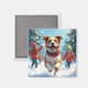 Border Terrier Snowball Fight Christmas Painting Magnet