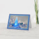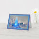 Lovely holiday or Christmas photographic greeting card. Bue ornaments and ribbons surround a glowing blue tree. Lights and stars enhance the background. Truly magical.