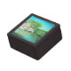I am so pleased with this little trinket box! The website photo doesn't do it justice. The photo on top is so glossy and beautiful! The colors are awesome. The lid and the box both have 2 little magnets so that the lid stays on, which I love. It arrived in good time. My 11 year old granddaughter is going to love it. Many thumbs up! There was no printing on this item, but the colors in the photo of the box lid are beautiful and vivid.