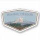 This Boring, Oregon sticker features an outdoor patch design with a rough paint-by-number style image of Mt Hood. The text is in a distressed font and reads "Boring Oregon" with "Established in 1903" directly below. Colors include, various shades of blue, green, brown and cream. This sticker is the perfect size to embellish your laptop, water bottle, notebook or envelope.