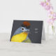Happy Fall card with Nashville warbler wearing a wooly bear caterpillar hat