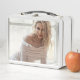 This is a standard metal lunchbox that appears to work just fine. We designed this box ourselves with an uploaded photo and custom text on the front and back. It looks absolutely beautiful except the front of the lunchbox is not centered like it shows in the photo. The print borders don't align with the inset flat part of the box where the preview photo online showed it perfectly centered in there. The back looks nice and centered though.