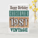 A birthday card with the year born. If your looking for a card that features the recipient's year of birth, then this one is for you. Add your choice of name and inside message.