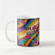 Party like it's 1987 with this totally rad personalized mug! Featuring authentic 80s-inspired bold geometric shapes and vibrant neon colors including hot pink, electric green, purple, and teal with dynamic diagonal stripes, this custom mug perfectly captures the electric energy of the awesome eighties. The design includes "BORN IN 1987" text and can be personalized with any name running vertically down the side. Perfect birthday gift for anyone born in 1987, retro enthusiasts, or 80s themed celebrations. High-quality ceramic construction ensures your morning coffee tastes as radical as this mug looks!