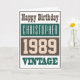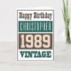 A birthday card with the year born. If your looking for a card that features the recipient's year of birth, then this one is for you. Add your choice of name and inside message. 1989