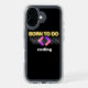 This digital design features a bold and modern aesthetic with the phrase "BORN TO DO coding" set against a sleek black background. The glowing yellow text, combined with a glitchy overlay effect and a vibrant coding symbol, emphasizes a deep passion for programming. Perfect for developers, tech enthusiasts, and coders who live and breathe code.