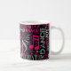Is dancing your passion? This cool coffee mug with a word cloud design says it all. Some of the words, interspersed with musical notes, are: breathe, live, love, dance, rhythm and born to dance. This version features shades of pink, grey and white on the background color of your choice. Search ID277 to see additional color options and matching products with this design.